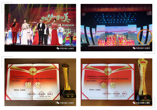 10月29日,由中華全國總工會(huì )宣傳教育部、山西省總工會(huì )指導,中國職工文化體育協(xié)會(huì )、中央企業(yè)媒體聯(lián)盟、太原市總工會(huì )主辦的“中國夢(mèng)·勞動(dòng)美”第六屆全國職工微影視大賽總結展演活動(dòng)在山西太原舉辦。中國兵器工業(yè)集團有限公司選送的企業(yè)宣傳片《兵工鑄夢(mèng)》獲“宣傳類(lèi)”銀獎,中國兵器工業(yè)集團內蒙古第一機械集團有限公司選送的《致敬勞動(dòng)者》獲“隨手拍類(lèi)”金獎。