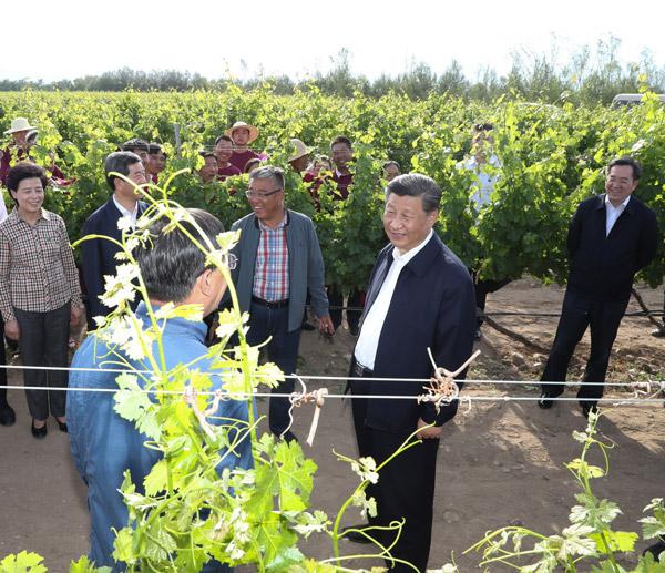 習近平總書(shū)記9日在銀川考察調研。他先后來(lái)到賀蘭縣稻漁空間鄉村生態(tài)觀(guān)光園、賀蘭山東麓葡萄種植園,了解當地發(fā)展特色農業(yè)產(chǎn)業(yè)、加強賀蘭山生態(tài)保護等情況。
